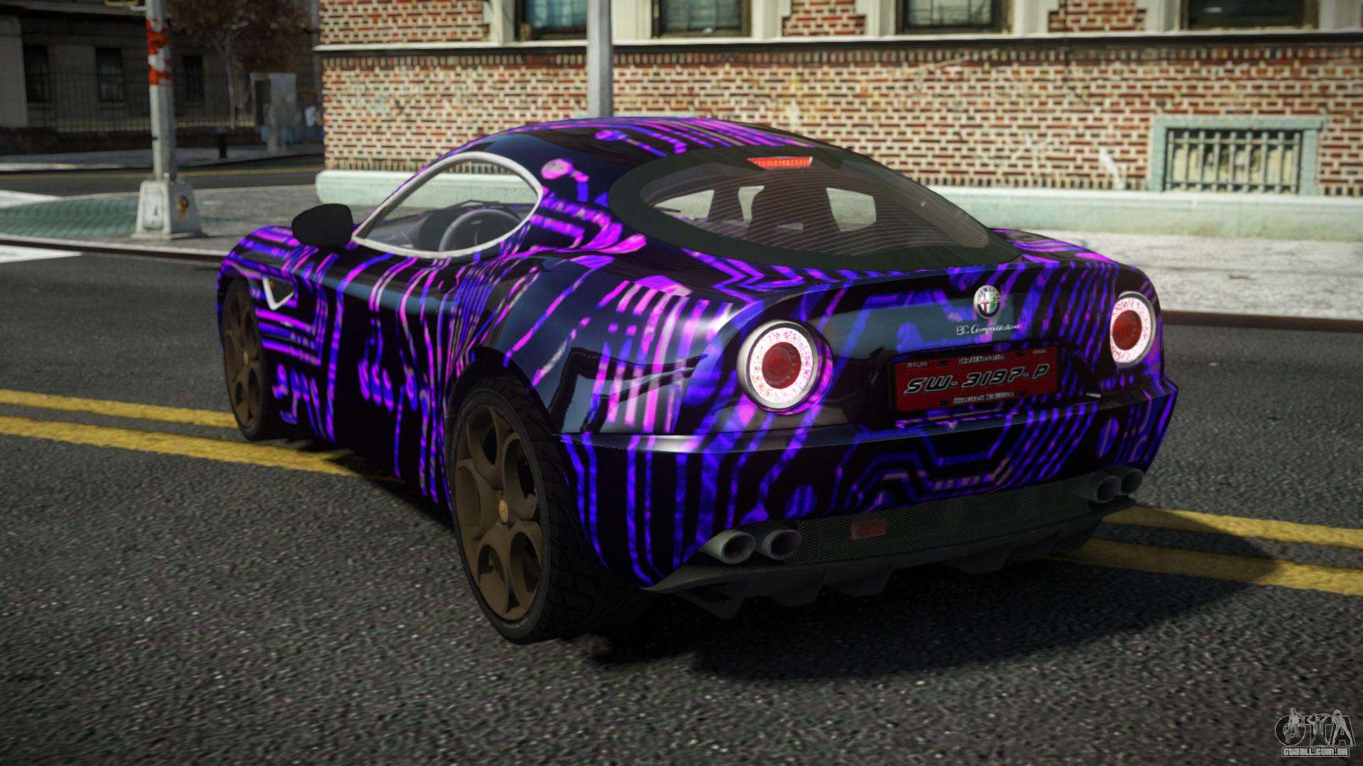 Para baixar o mod Alfa Romeo 8C Zeholey S3 para GTA 4 gratuitamente, siga os links abaixo. O instalador automático substitui o Banshee por padrão, mas você pode escolher absolutamente qualquer veículo padrão do jogo que deseja substituir por um novo modelo.