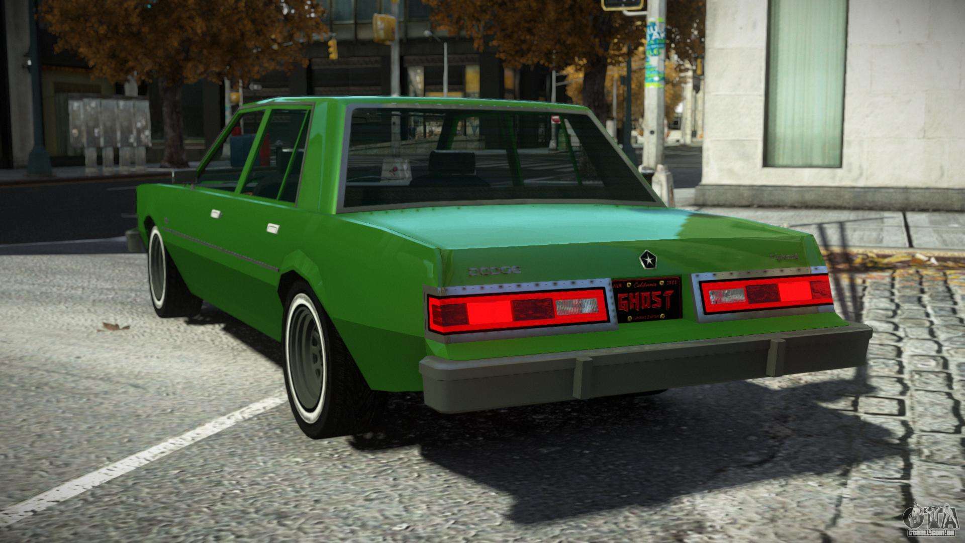 O mod Dodge Diplomat Ruheqa para GTA 4 pode ser baixado abaixo nos links. A modificação é instalada automaticamente por padrão para substituir o Almirante e, com a ajuda de nosso instalador, você também pode substituí-lo por qualquer veículo de jogo padrão.