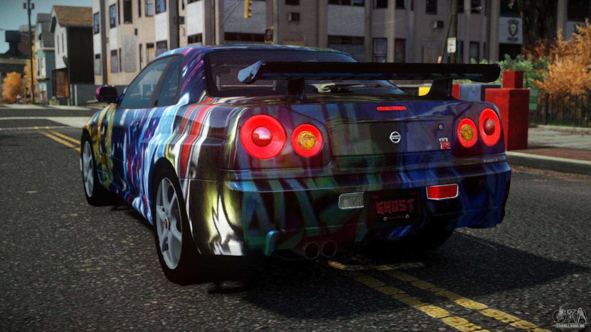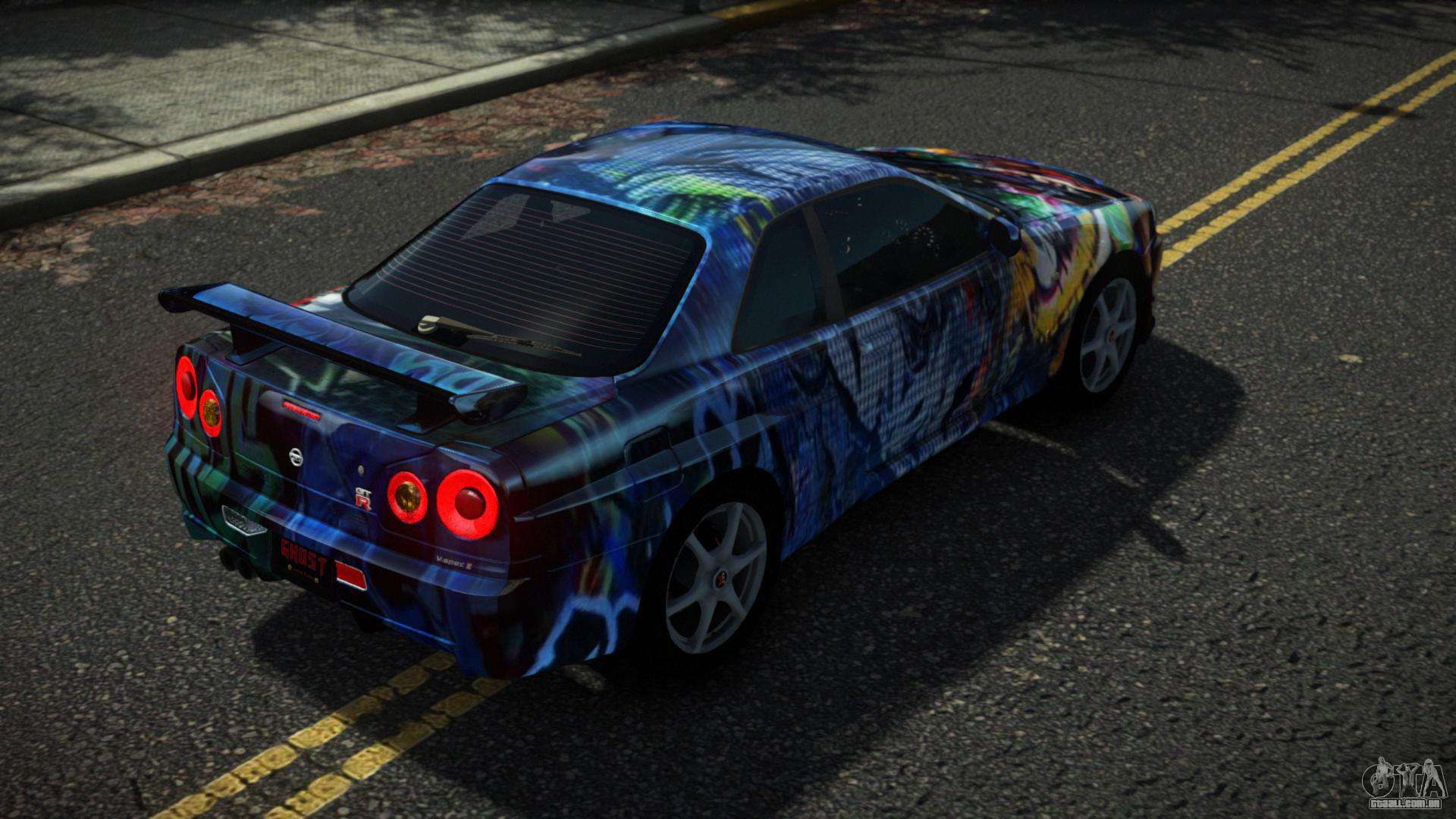 Mod Nissan Skyline R34 Drujo S3 para GTA 4 pode ser baixado abaixo nos links. A modificação é instalada automaticamente por padrão para substituir o Feltzer e, com a ajuda de nosso instalador, você pode substituí-lo por qualquer veículo de jogo padrão.