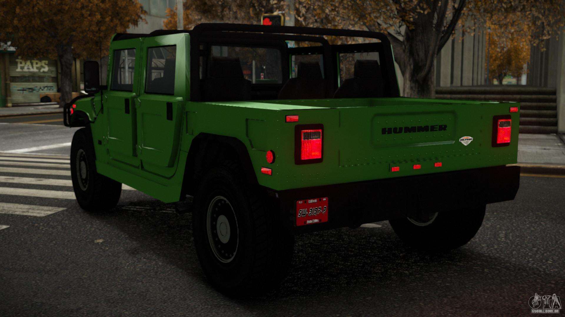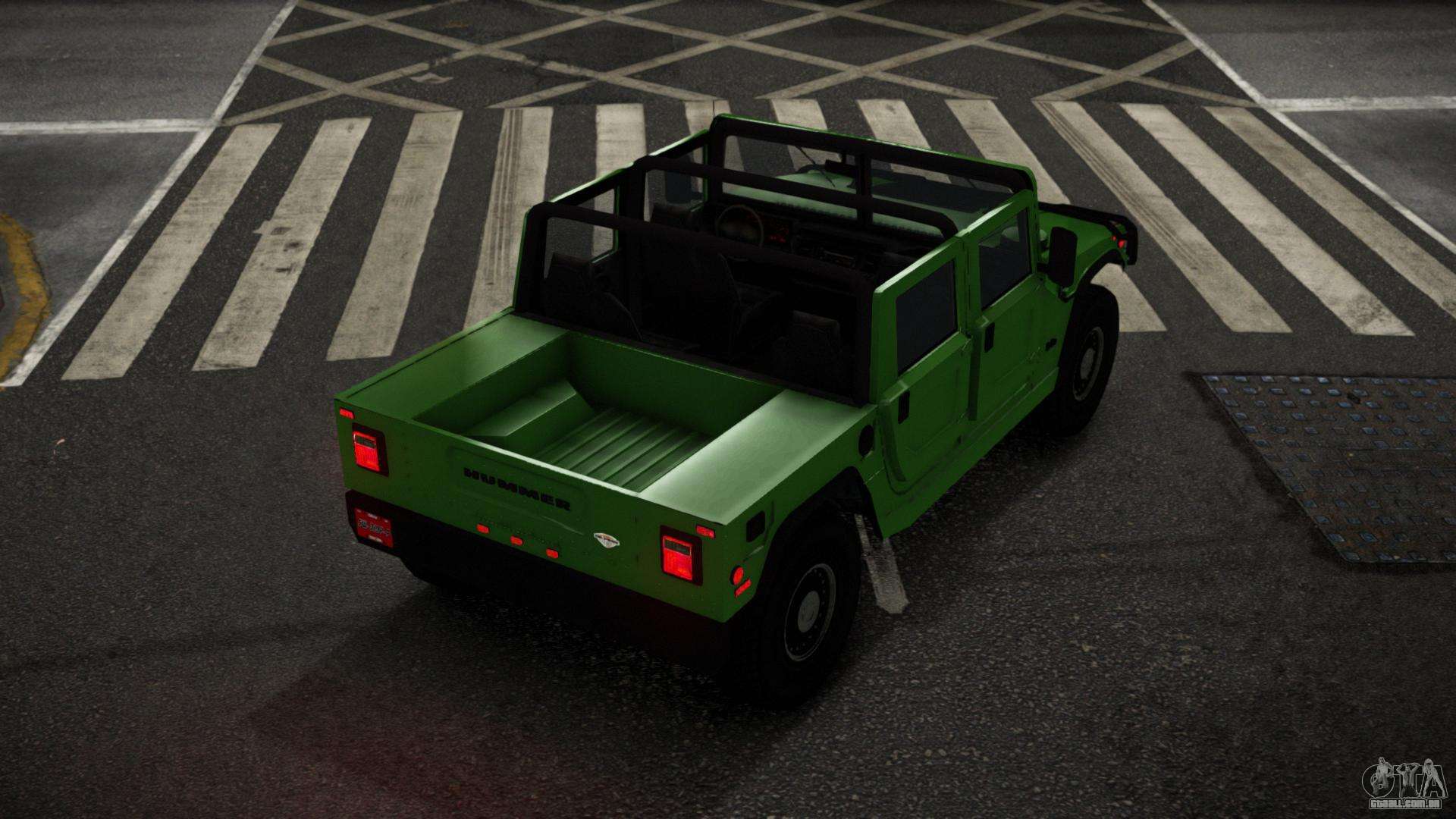 Você pode apreciar todo o charme do carro baixando o mod Hummer H1 Qugvaqeca para GTA 4 clicando nos links abaixo. O mod é instalado automaticamente em dois cliques, por padrão substitui o NOOSE Patriot, ou escolha qualquer outro veículo do jogo que você deseja transformar.