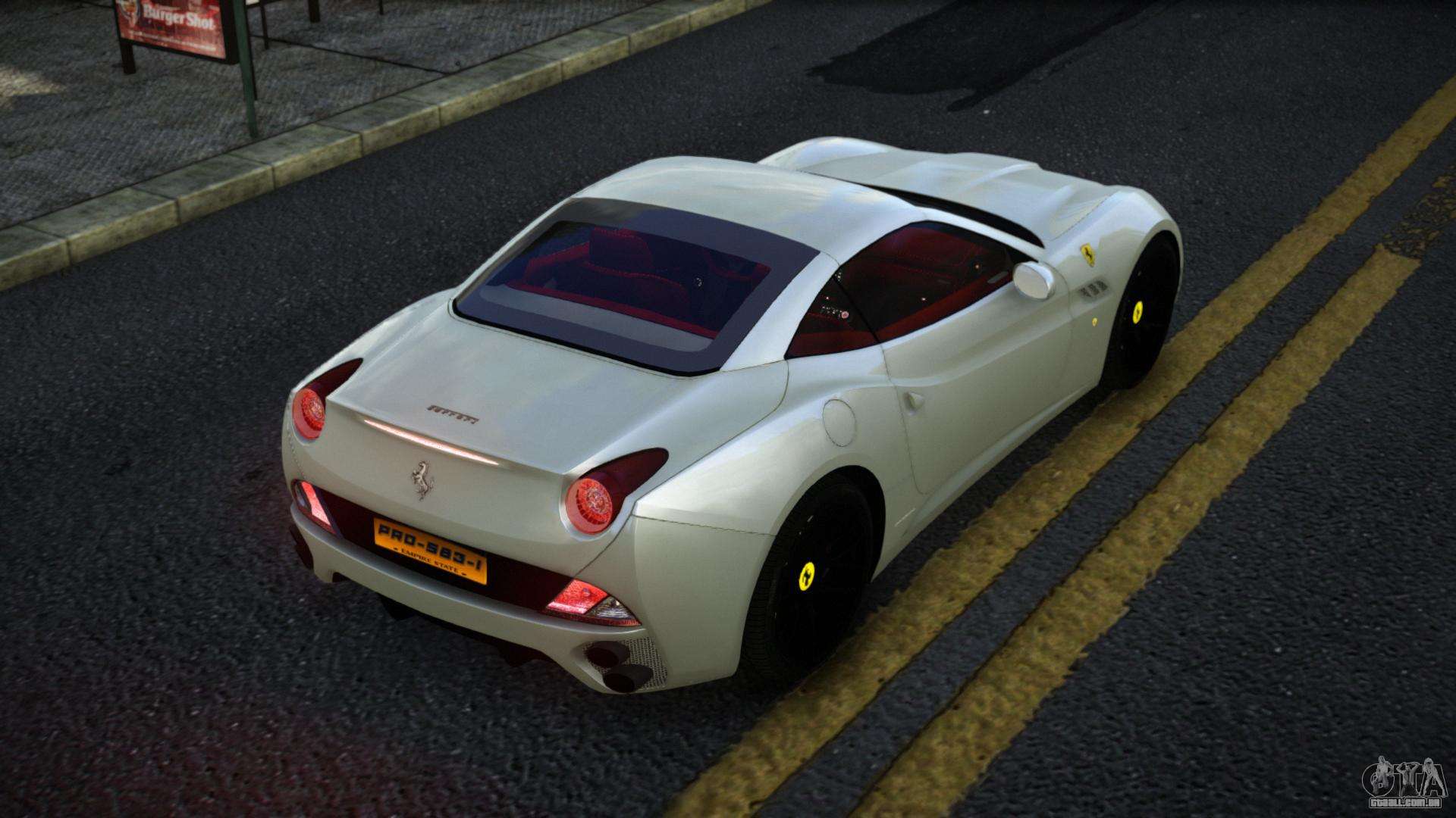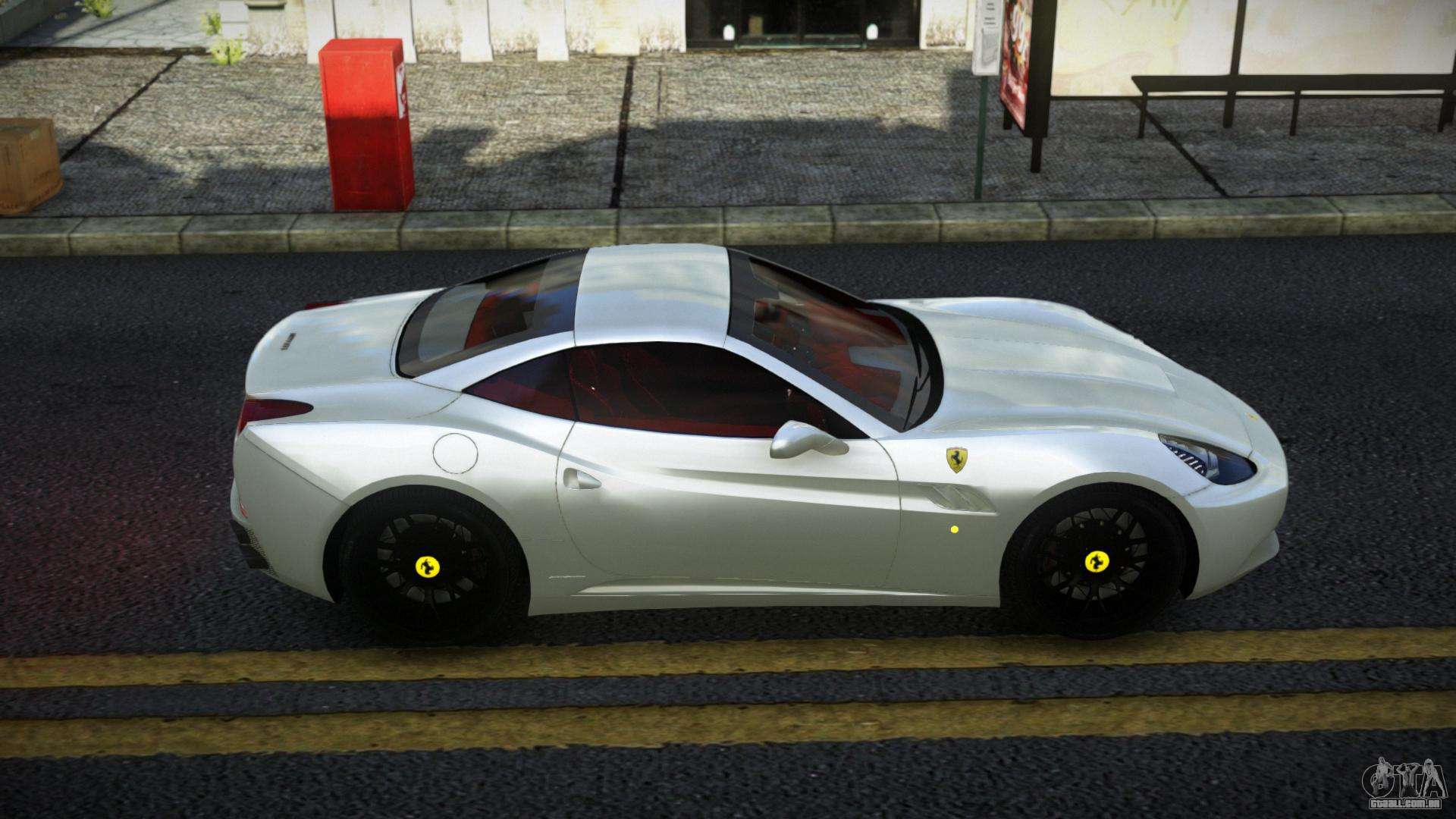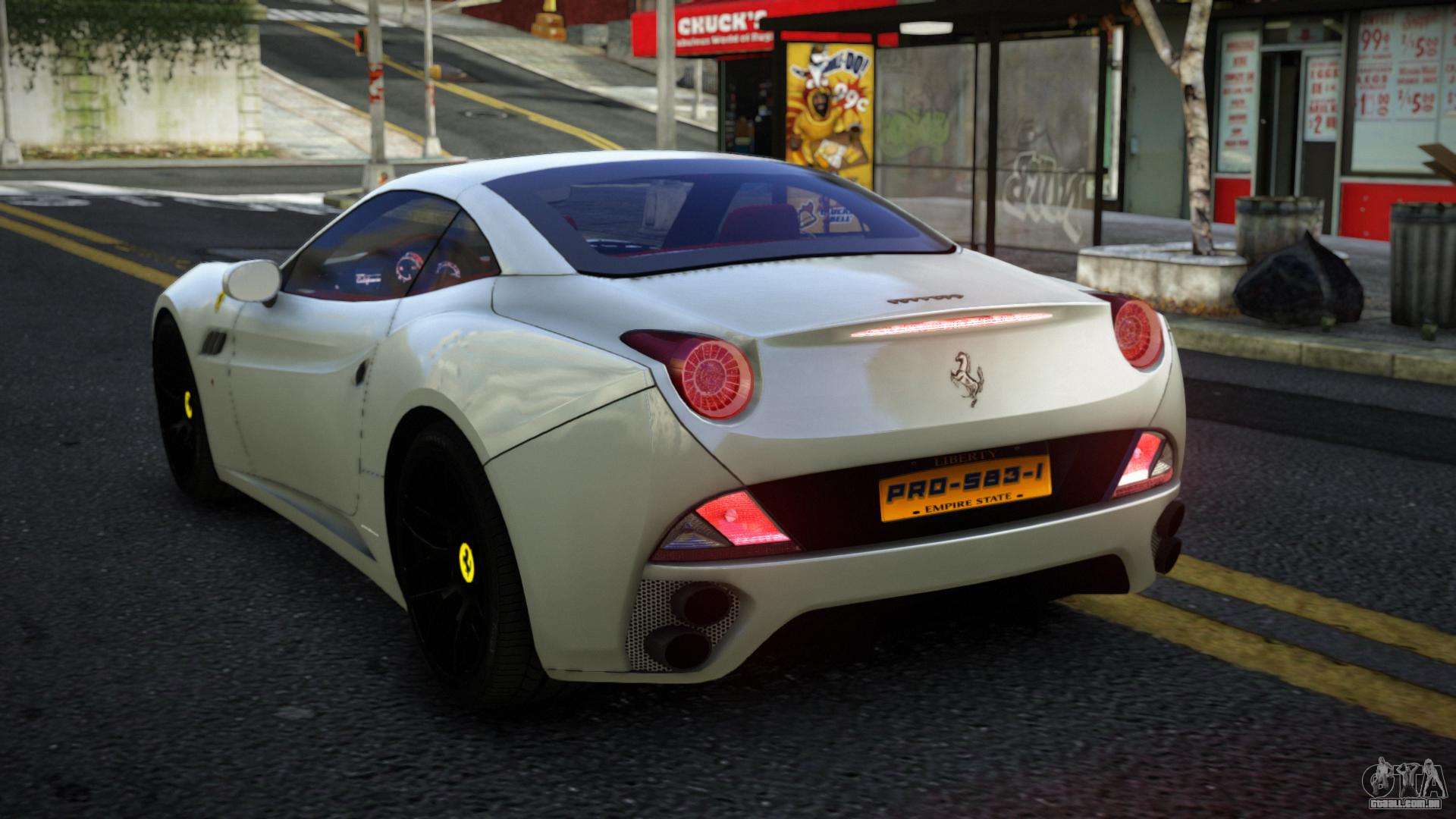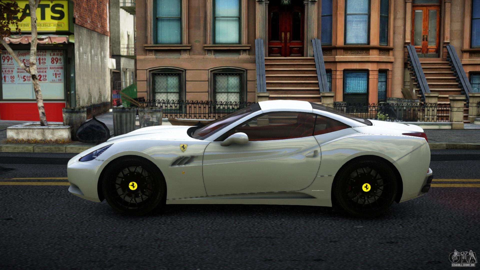 O mod Ferrari California Moqibiw para GTA 4 pode ser baixado abaixo nos links. A modificação é instalada automaticamente por padrão para substituir o Feltzer, e com a ajuda do nosso instalador você pode substituí-lo por qualquer veículo padrão de jogo.