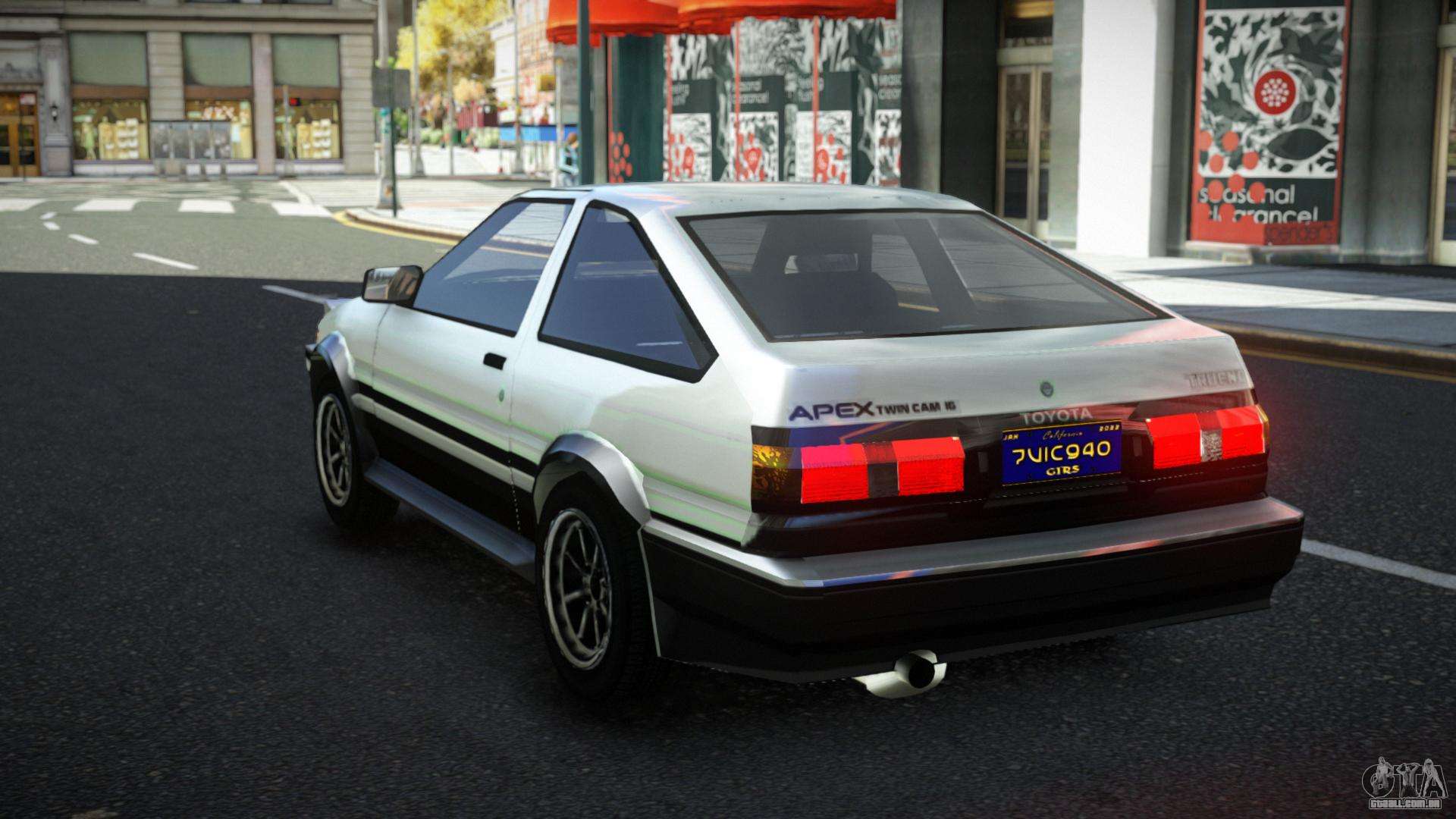 O mod Toyota AE86 Xepo para GTA 4 pode ser baixado abaixo nos links. A modificação é instalada automaticamente por padrão para substituir o Blista Compact, e com a ajuda do nosso instalador você pode substituí-lo por qualquer transporte padrão de jogo.