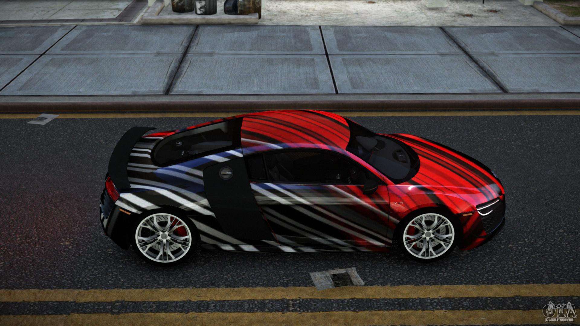 Para baixar gratuitamente o mod Audi R8 Chtoel S1 para GTA 4, siga os links abaixo. O instalador automático substitui o Banshee por padrão, mas você pode escolher absolutamente qualquer veículo padrão do jogo que queira substituir por um modelo novo.