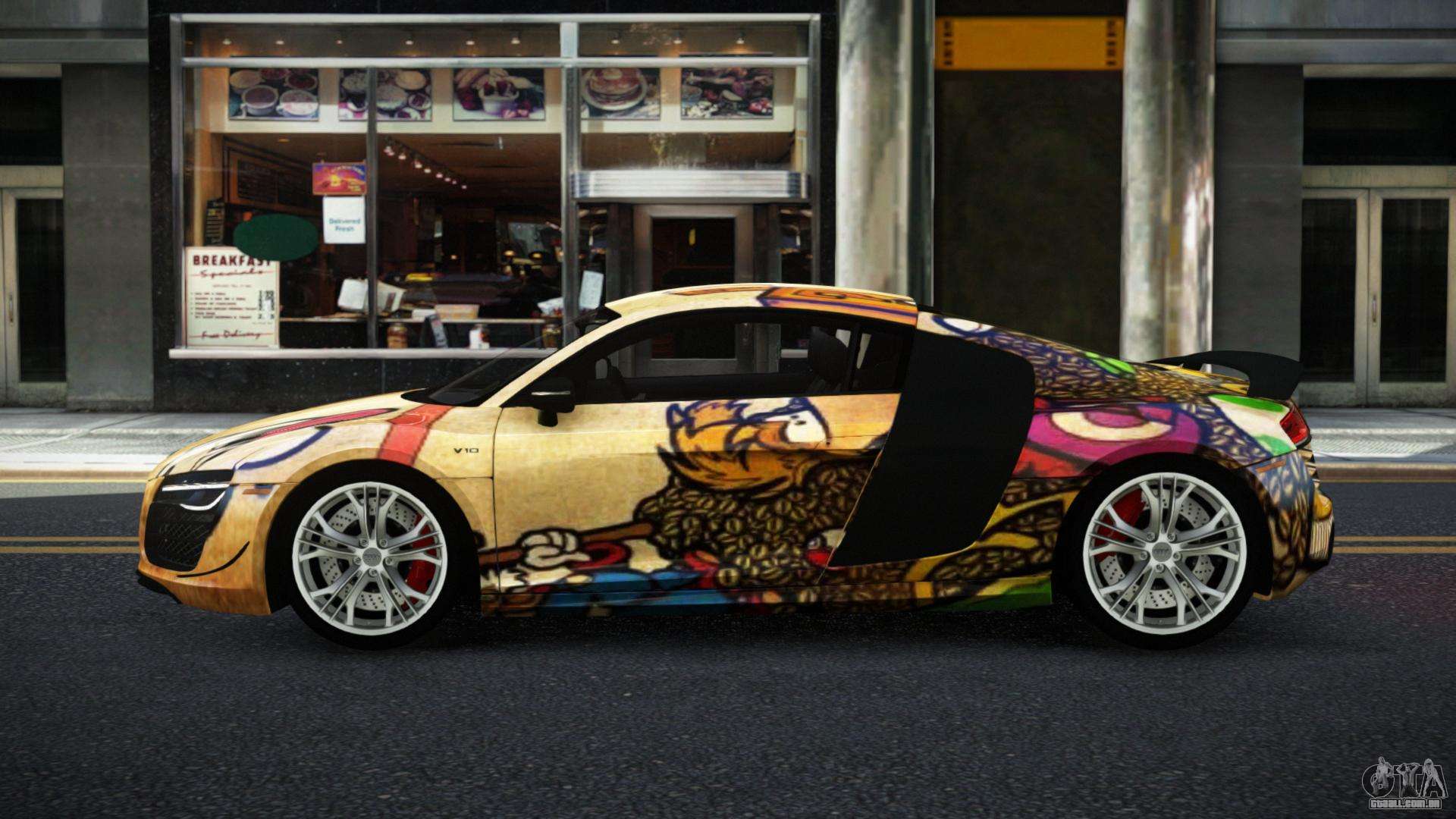 Mod Audi R8 Chtoel S3 para GTA 4 pode ser baixado abaixo nos links. A modificação é instalada automaticamente por padrão para substituir a Banshee, e com a ajuda do nosso instalador você também pode substituí-la por qualquer veículo padrão do jogo.