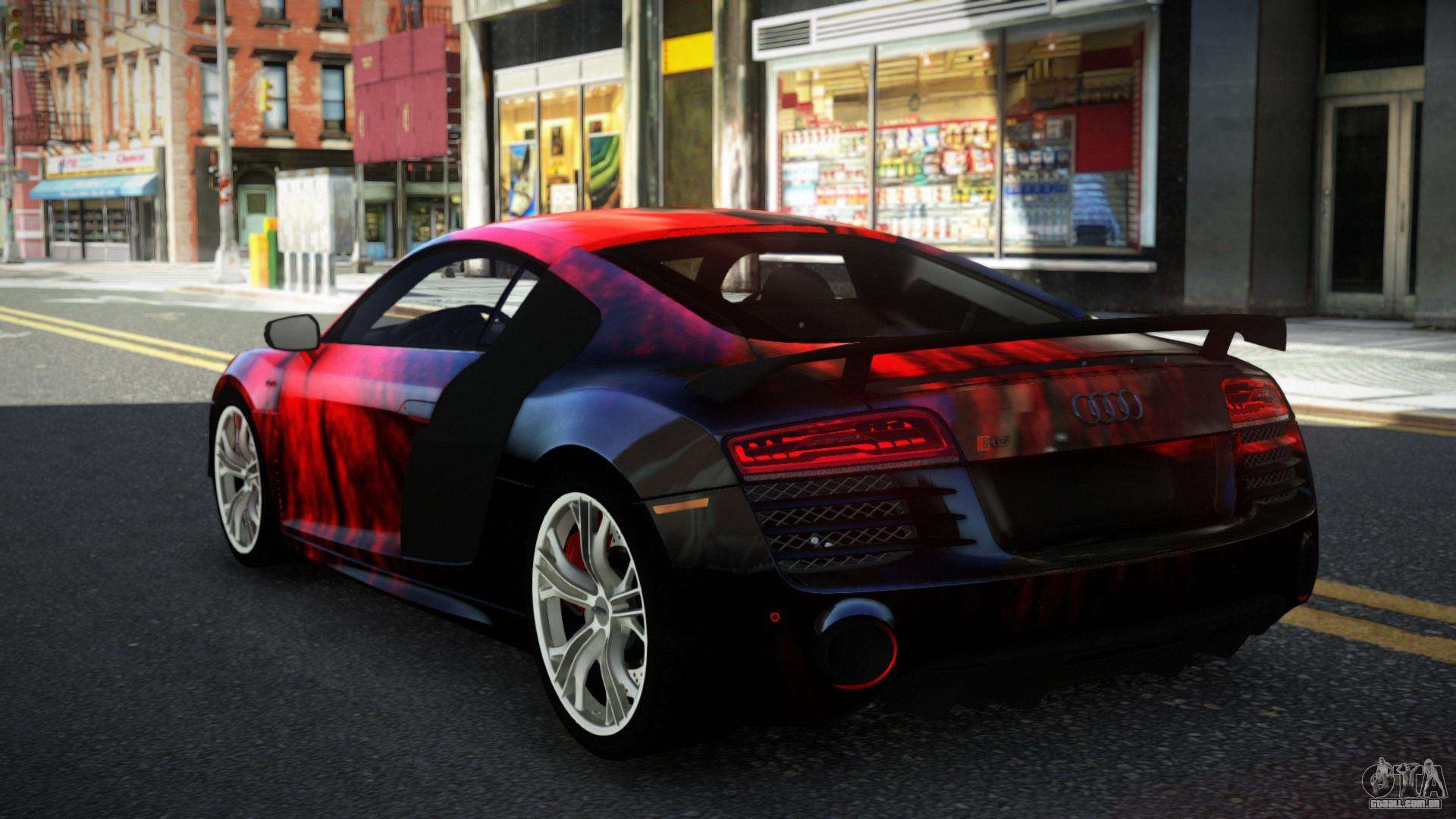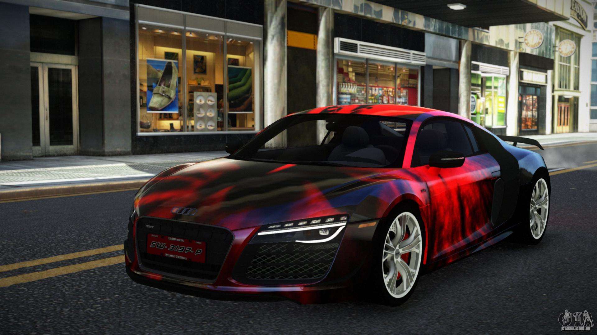 Você pode apreciar todo o charme do carro baixando o mod Audi R8 Chtoel S12 para GTA 4 clicando nos links abaixo. O mod é instalado automaticamente em dois cliques, por padrão ele substitui a Banshee, ou escolha qualquer outro veículo do jogo que você queira transformar.