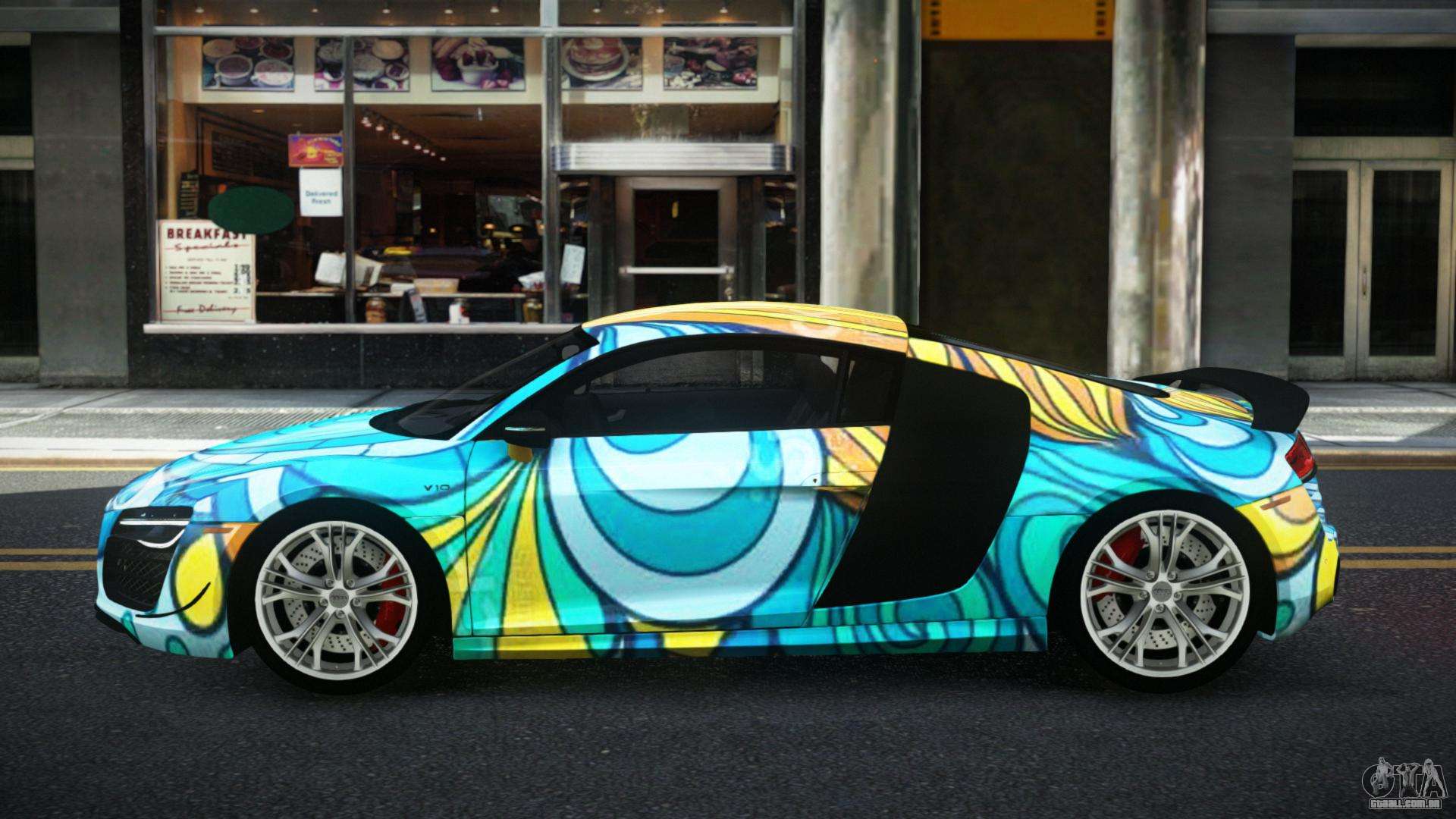 Mod Audi R8 Chtoel S13 para GTA 4 pode ser baixado abaixo nos links. A modificação é instalada automaticamente por padrão para substituir a Banshee, e com a ajuda do nosso instalador você também pode substituí-la por qualquer veículo padrão do jogo.