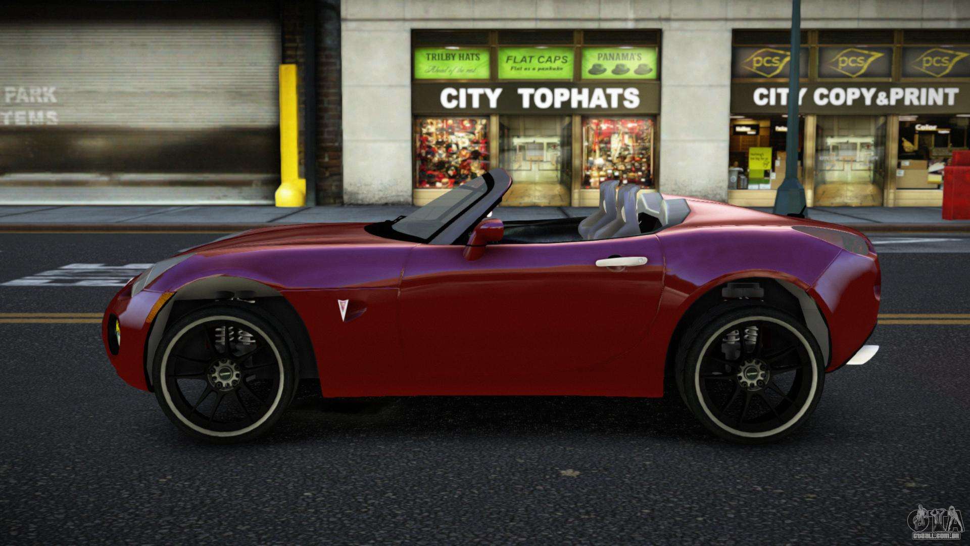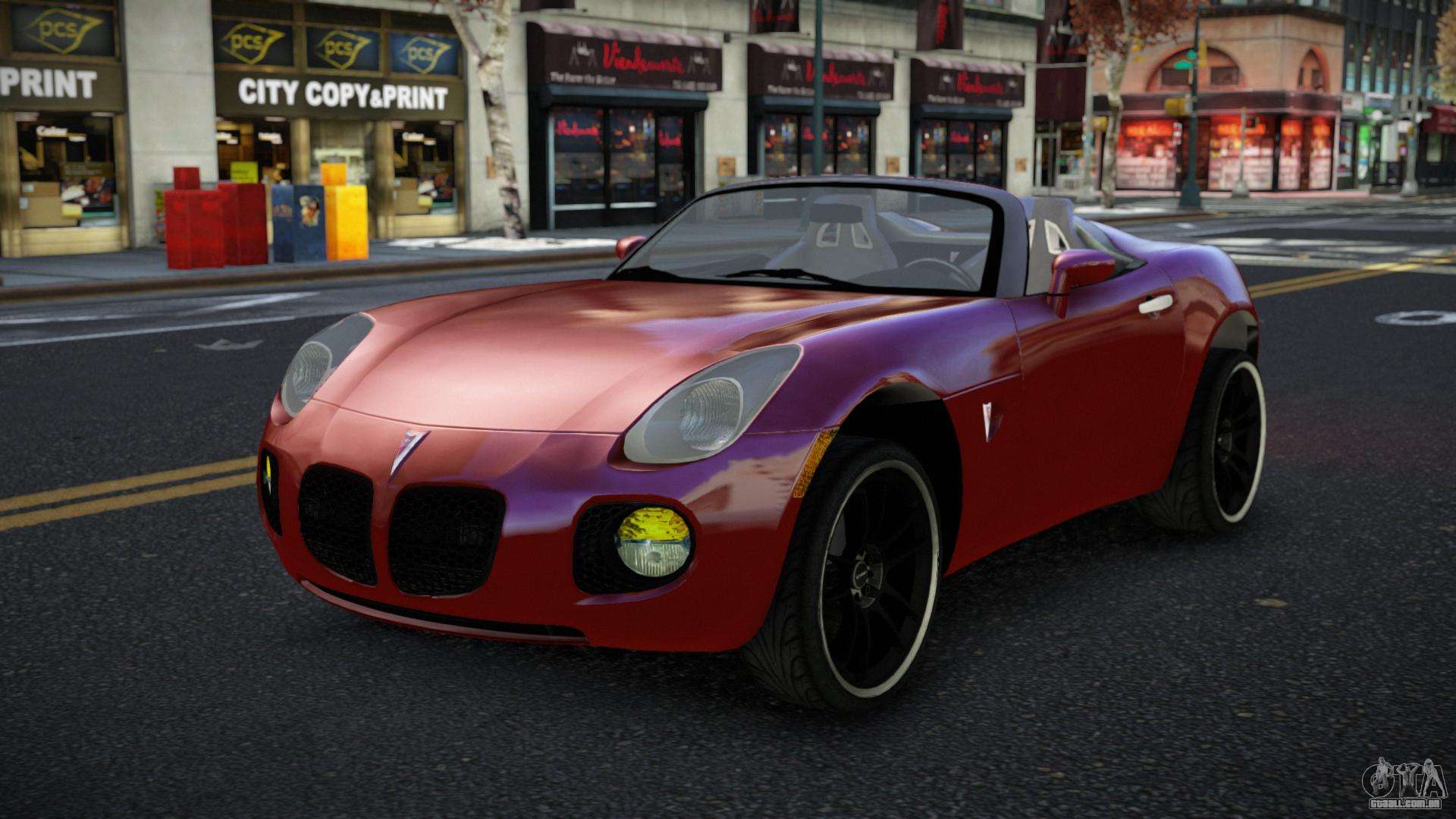 Descubra um carro único que combina design, tecnologia e desempenho no emocionante Pontiac Solstice Fozwiwi para GTA 4. Estiloso, esportivo e prático, é o carro perfeito para suas viagens.