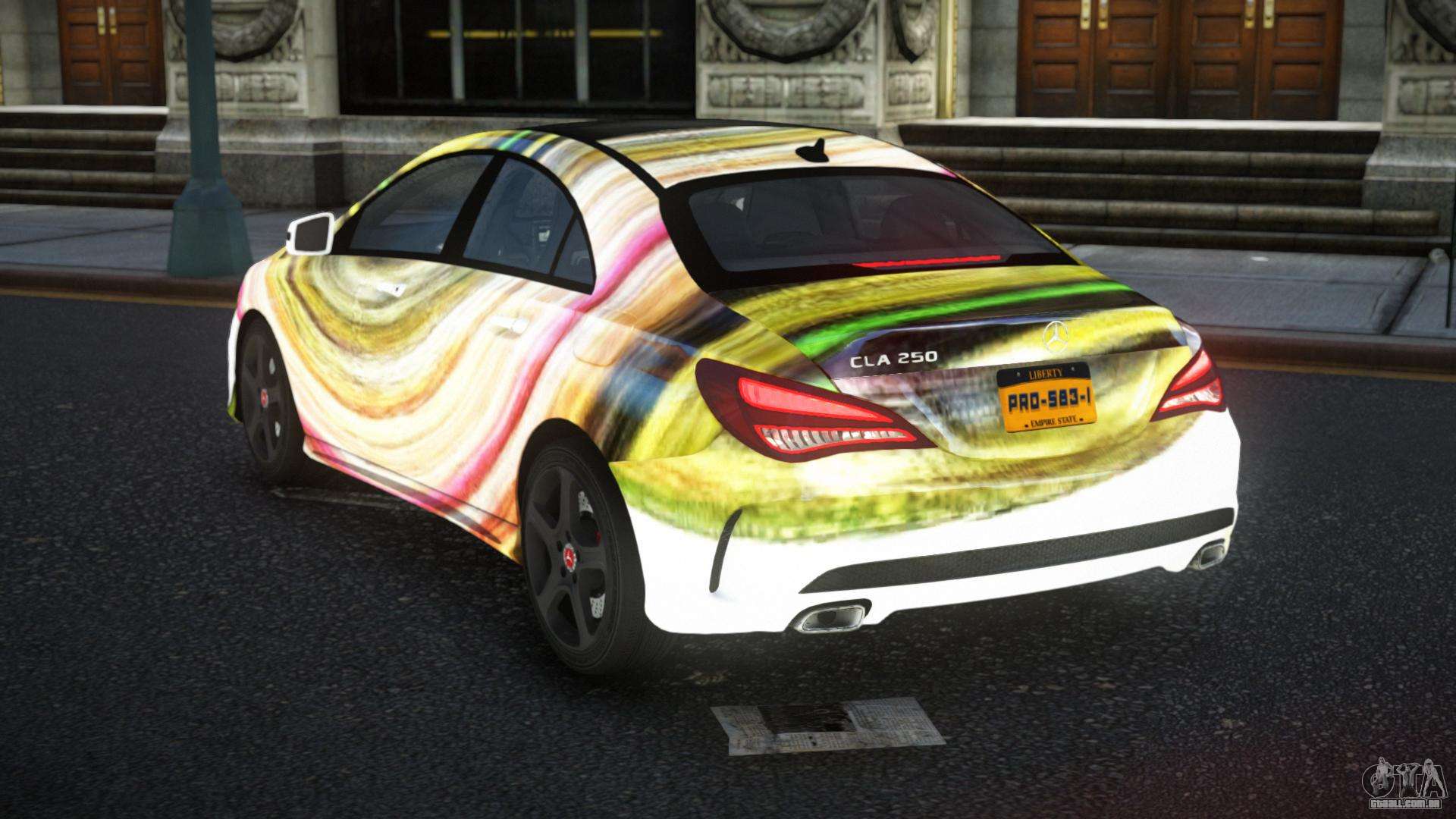 Mod Mercedes-Benz CLA AMG Kayah S13 para GTA 4 pode ser baixado abaixo nos links. A modificação é instalada automaticamente por padrão para substituir o Admiral, e com a ajuda do nosso instalador você também pode substituí-lo por qualquer veículo padrão do jogo.