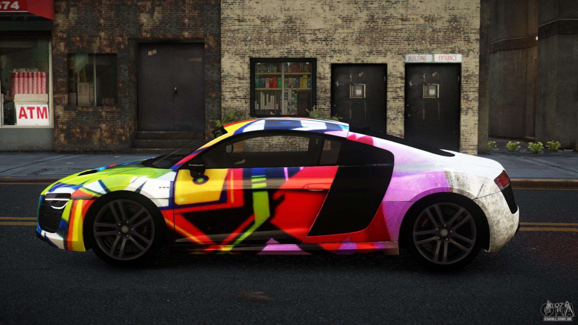 Mod Audi R8 Sonth S1 para GTA 4 pode ser baixado abaixo nos links. A modificação é instalada automaticamente por padrão para substituir o Feltzer, e com a ajuda do nosso instalador você pode substituí-lo por qualquer veículo padrão de jogo.