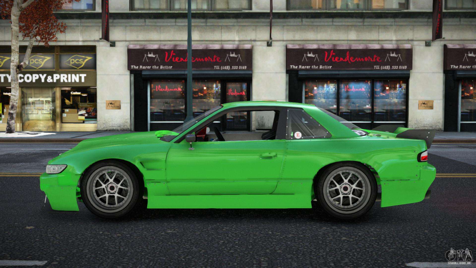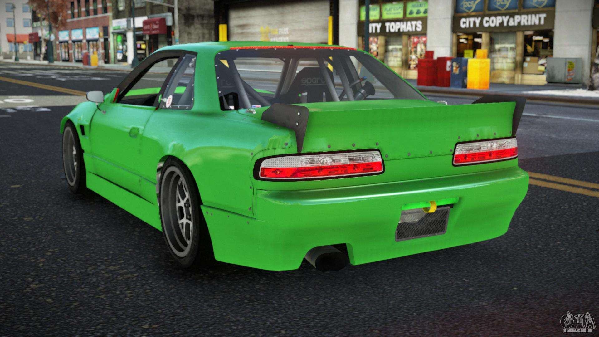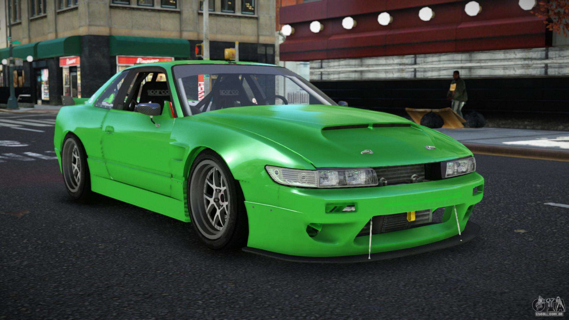 O mod Nissan 240SX Mukopegax para GTA 4 pode ser baixado abaixo nos links. A modificação é instalada automaticamente por padrão para substituir a Banshee, e com a ajuda do nosso instalador você também pode substituí-la por qualquer veículo padrão do jogo.