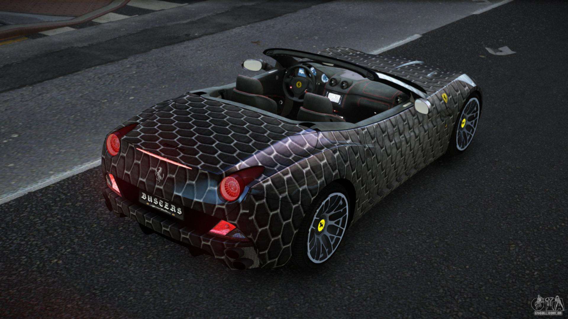 Cansado da monotonia nas ruas de Liberty City, então você está no lugar certo! Confira o mod de carro Ferrari California Cabendy S9 para GTA 4. Sinta o conforto e a alta qualidade do trabalho. Diversifique as ruas com este carro e você ficará satisfeito.
