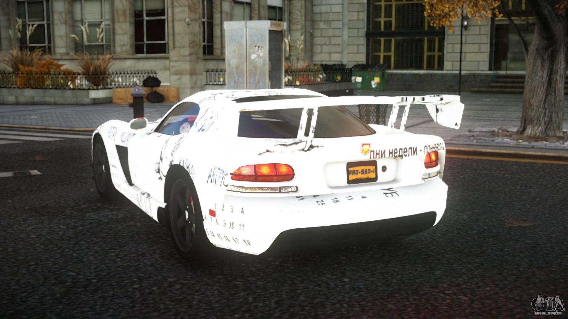 Olá a todos! Queremos compartilhar com você um mod para o Dodge Viper Seckja S3 para GTA 4. Esse carro se encaixa perfeitamente na jogabilidade e dilui o trânsito de Liberty City.