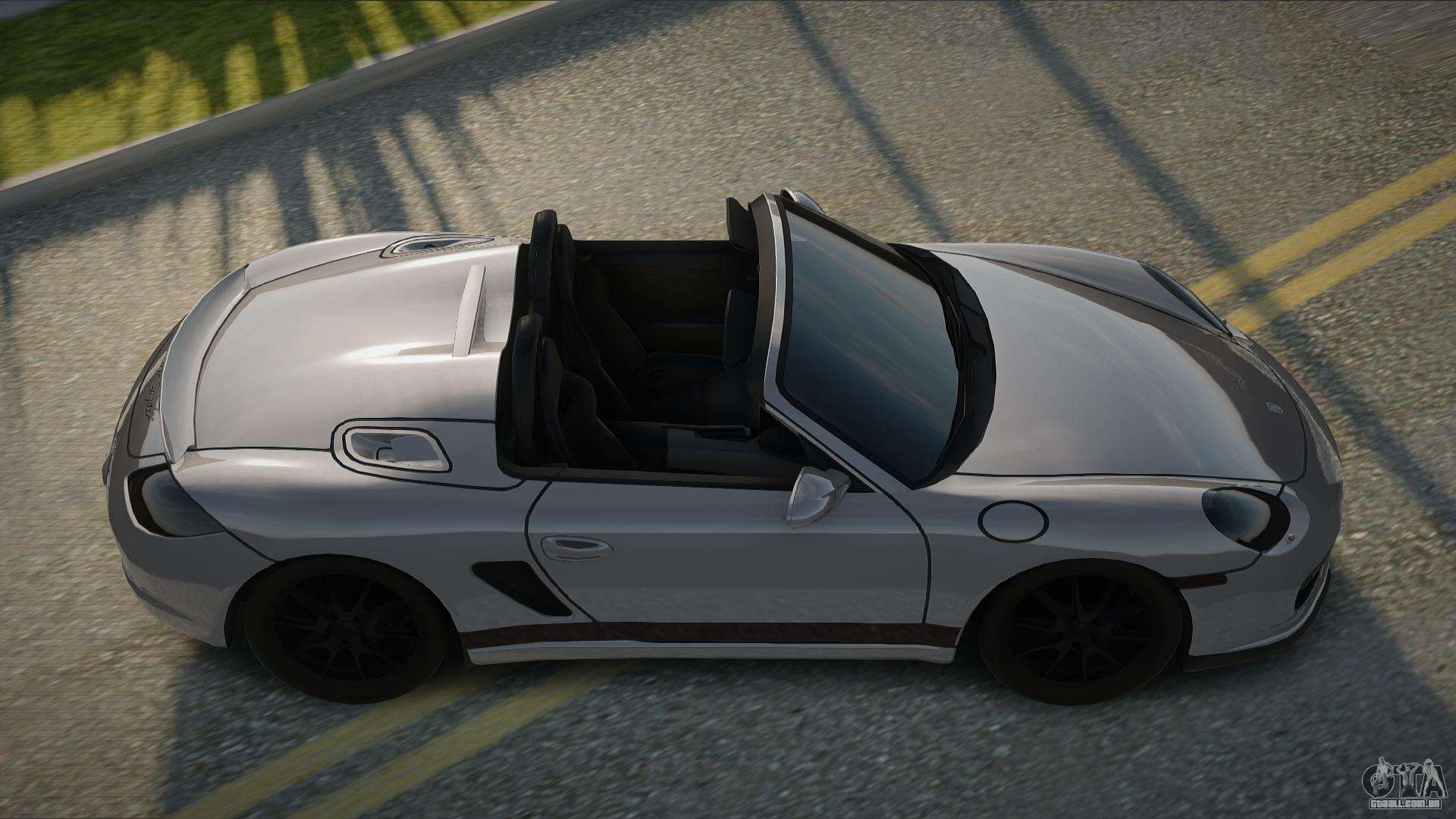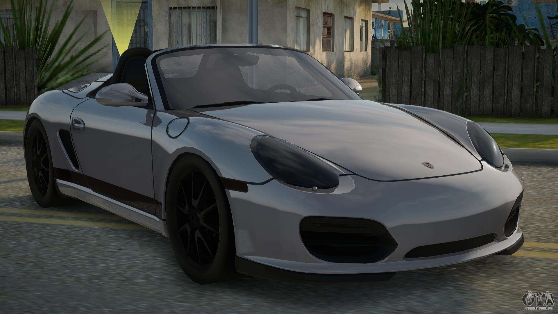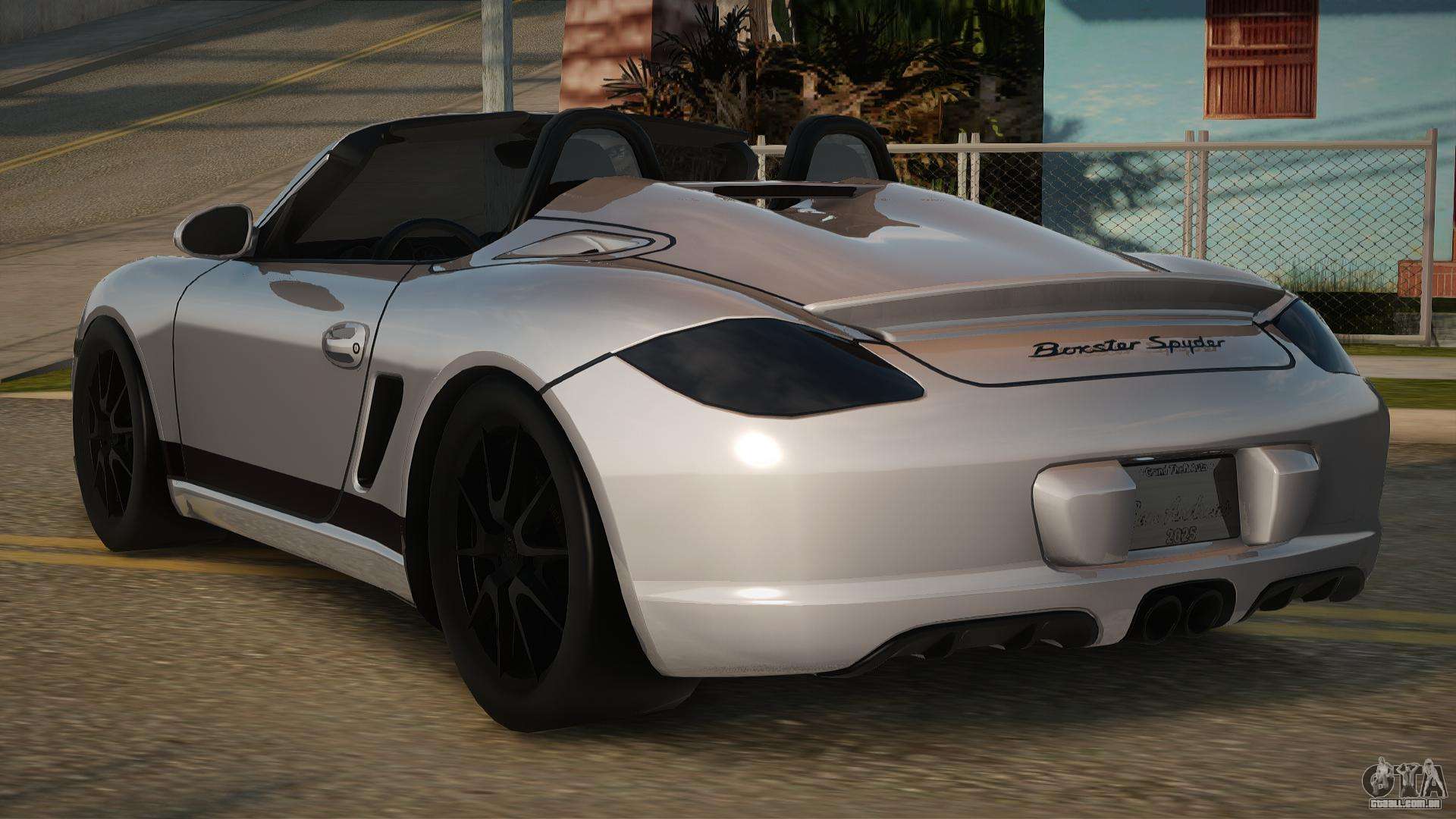 Mod Porsche Boxster Spyder (987) para o GTA San Andreas pode ser baixado abaixo nos links. A modificação é instalada automaticamente por padrão para substituir o Comet e, com a ajuda do nosso instalador, você também pode substituí-lo por qualquer veículo de jogo padrão.