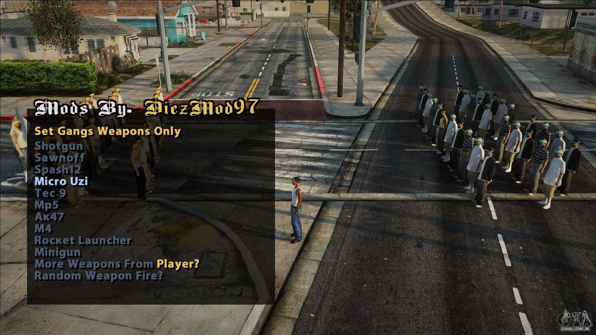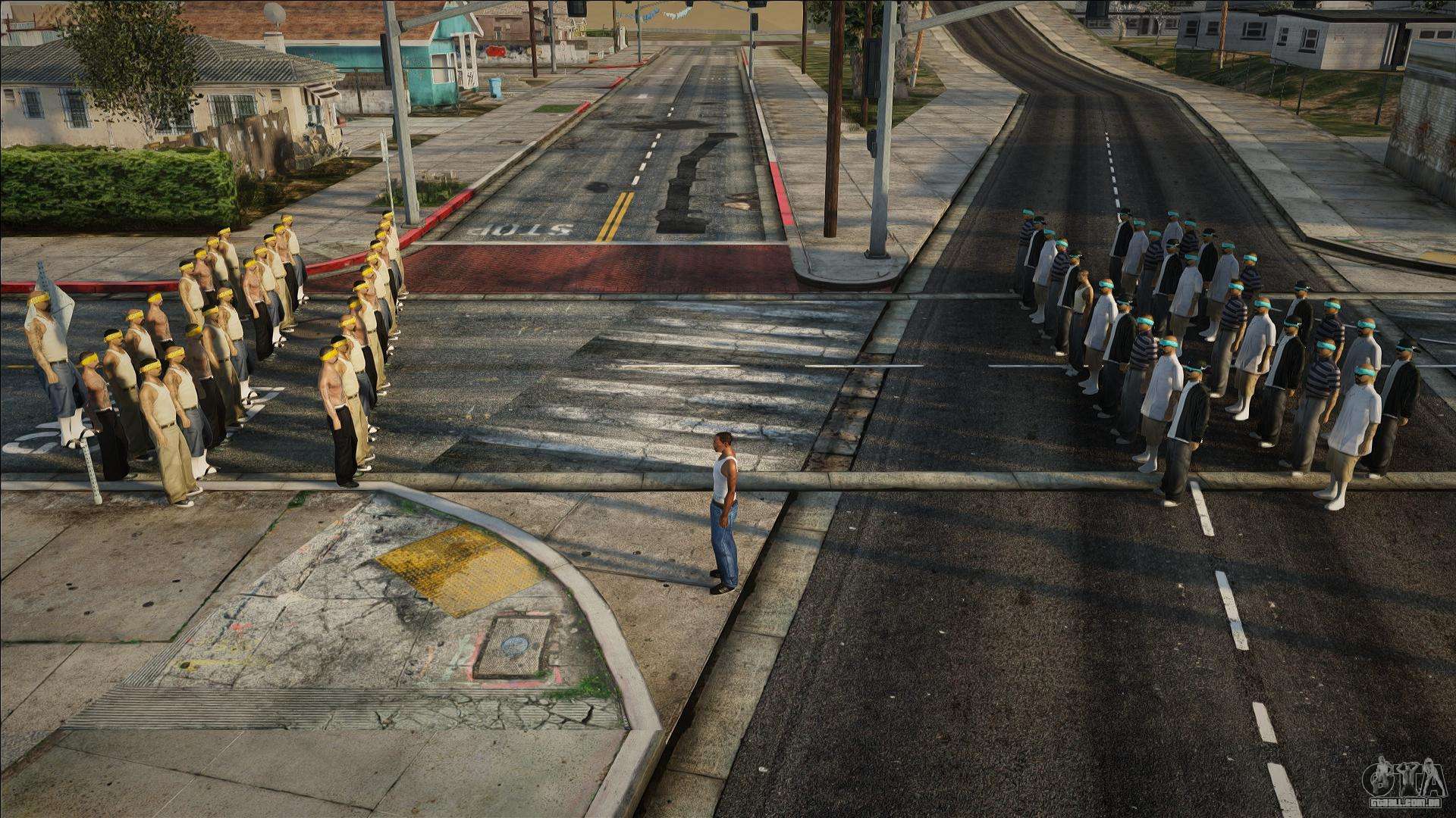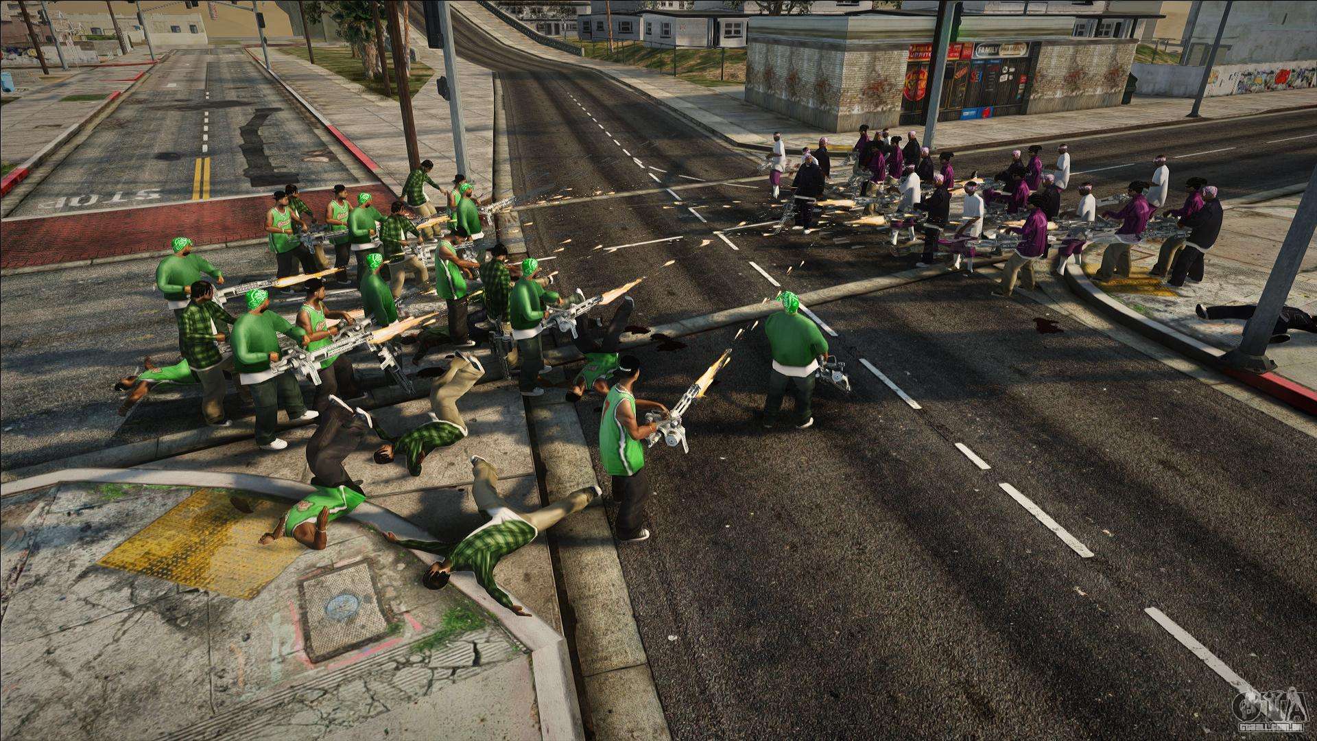 Roteiro de alta qualidade - Street Gang Wars (30 vs 30) para GTA San Andreas. O script adicionará a capacidade de criar um massacre de gangues.