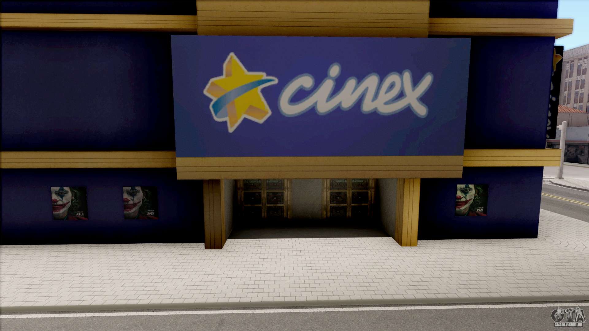 Mod Cinex para GTA San Andreas. Este mod adiciona um novo cinema ao jogo. O prédio é feito de suas boas texturas. O cinema fica ótimo no jogo. O local é mostrado na captura de tela.