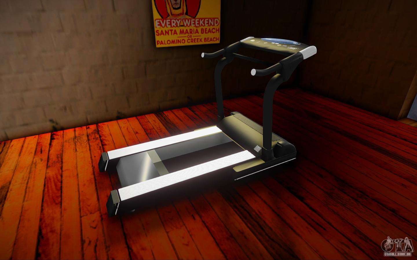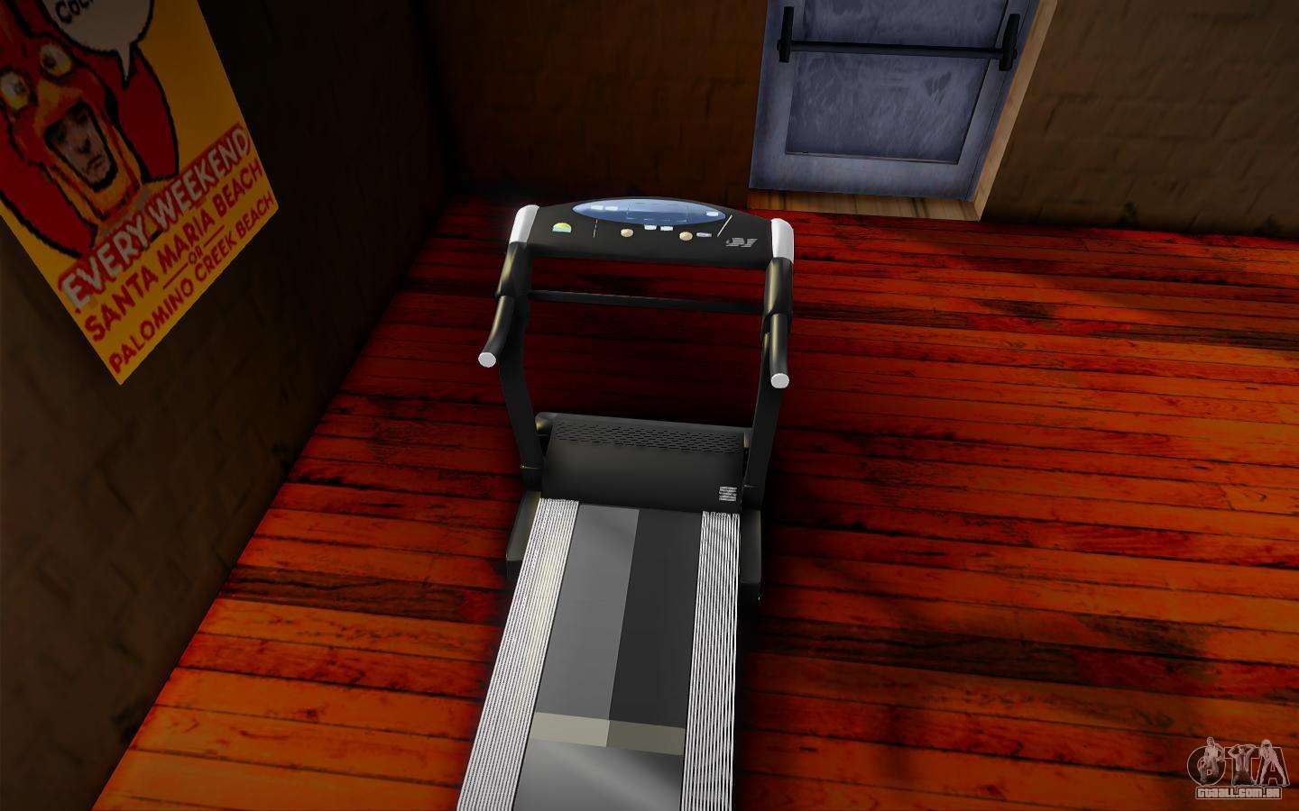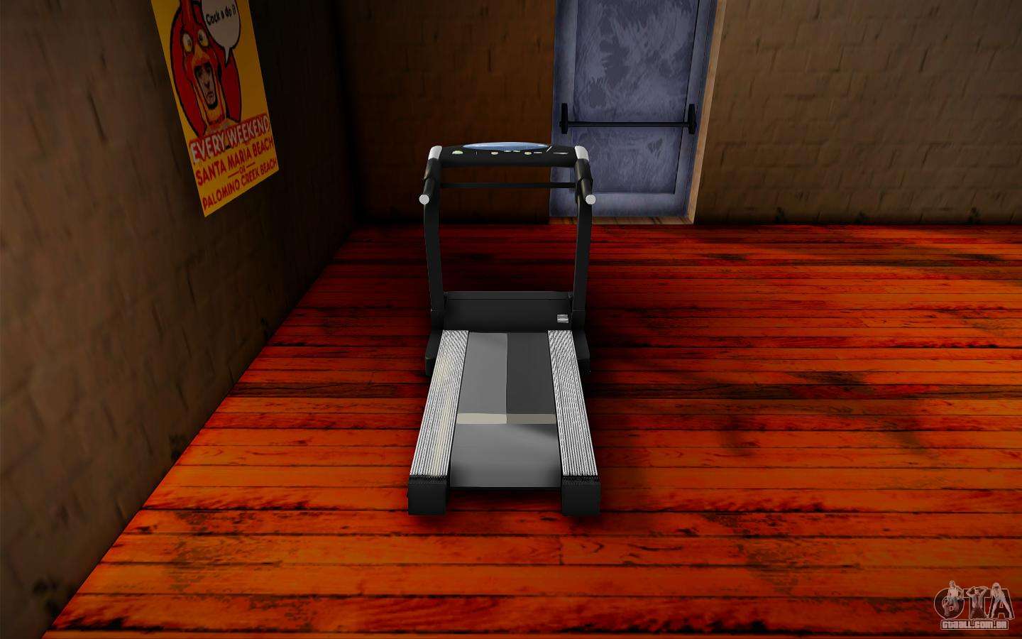 Conheça o Mod - Esteira de Treinador para GTA San Andreas. Esta modificação substitui a esteira na academia. O mod tem um modelo de alta qualidade e texturas. A atmosfera do jogo não é estragada. Não foram encontrados insetos ou insetos.