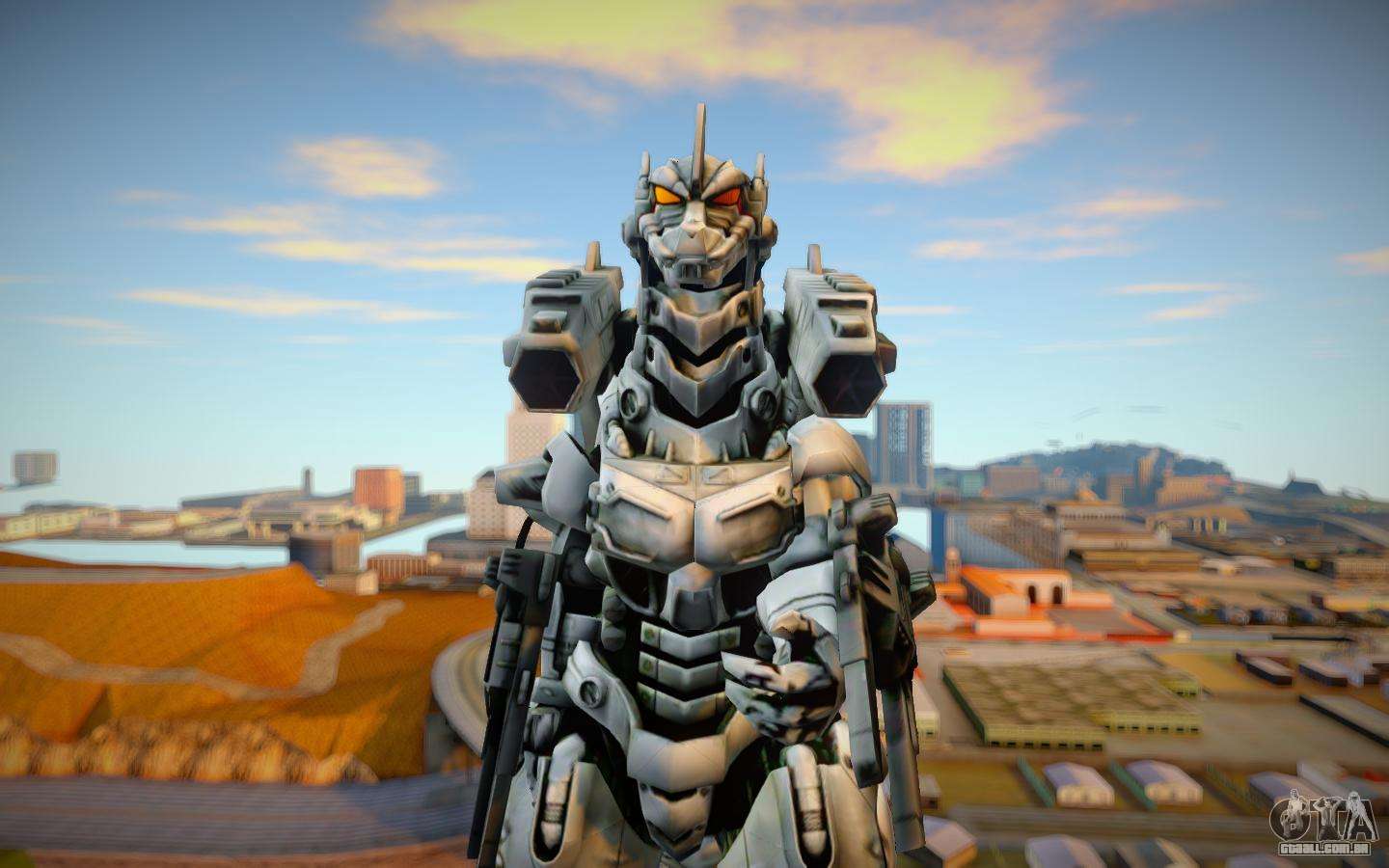 Baixe o mod mechagodzilla gratuito para GTA San Andreas com instalação automática nos links na parte inferior da página. Mod está pronto para substituir o modelo Cesar. Tenha um bom jogo.