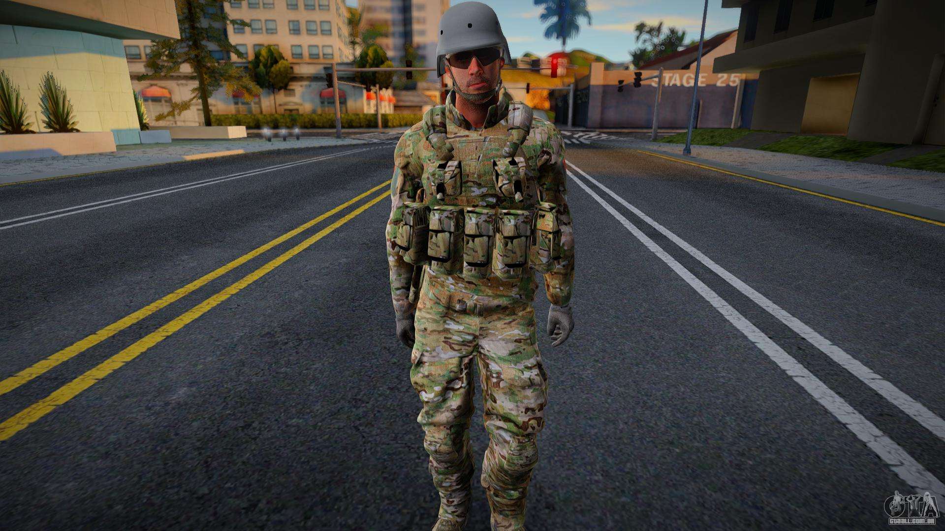 Uma boa pele - Ejercito Albano para GTA San Andreas. Uma boa pele vai deixar seu jogo mais interessante e bonito! Esta pele tem um modelo de alta qualidade e texturas, sem erros e outros bugs. Esqueleto móvel e ossos das mãos. Aproveite o download.